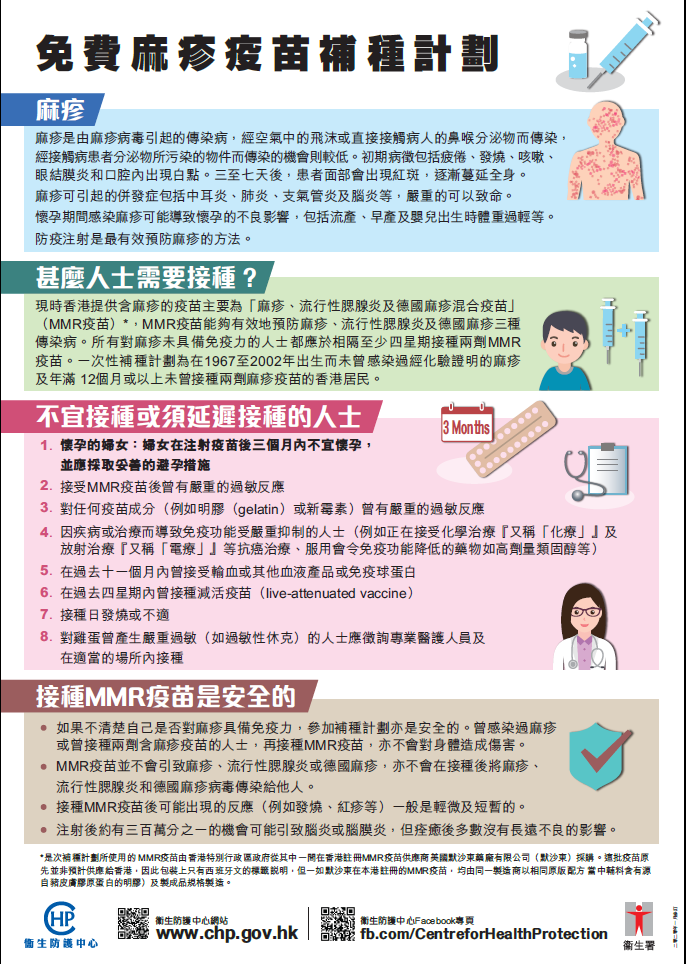 免費麻疹疫苗補種計劃 - 未具免疫力的成人 / Free Measles Vaccination Mop-up Programme - Non-immune Adults